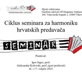 3. seminar u sklopu Ciklusa za harmoniku hrvatskih predavača održati će se 16. i 17. veljače 2023. godine u Vukovaru, Glazbeni odjel pri OŠ Dragutina Tadijanovića